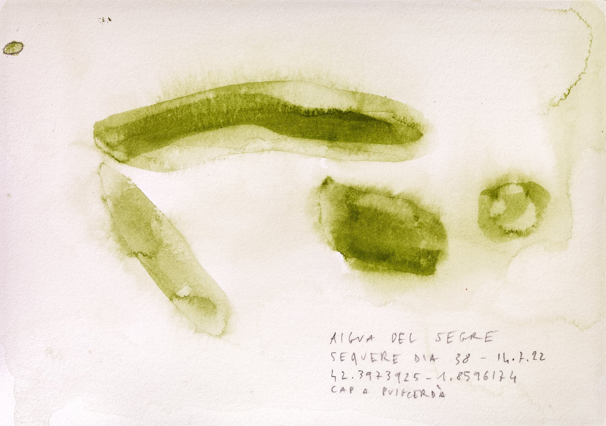 Agua del río Segre y acuarela sobre papel Arche 300 gr., 14.8 × 21 cm